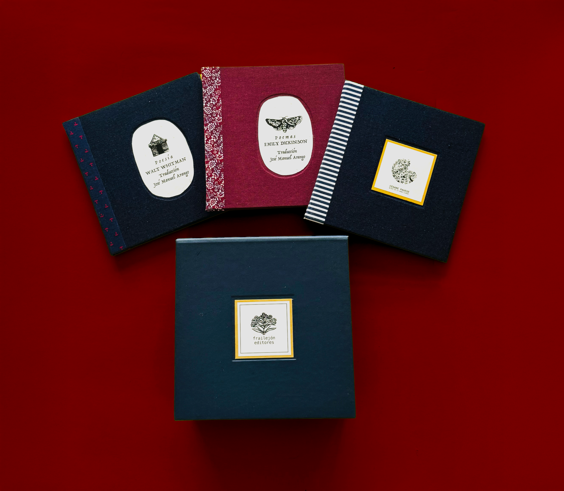 Tres voces inmortales de la poesía reunidas en una edición bilingüe cuidadosamente diseñada. Emily Dickinson, con su misterio y delicadeza interior; Walt Whitman, con su canto libre y vitalista a la existencia; y Cesare Pavese, con su melancólico pulso moderno, dialogan aquí entre lenguas y siglos. Una caja para leer despacio, sentir y conservar: tres libros que celebran la belleza y el poder de la palabra poética.